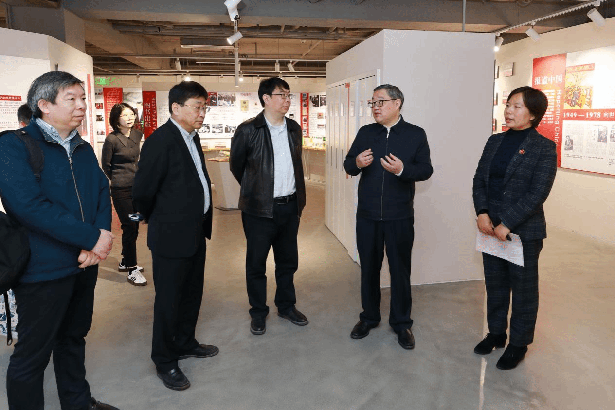 座谈会前,成旦红书记一行还参观了外文局局史馆。翟主任详细介绍了中国外文局的发展历史、功能定位及未来愿景。