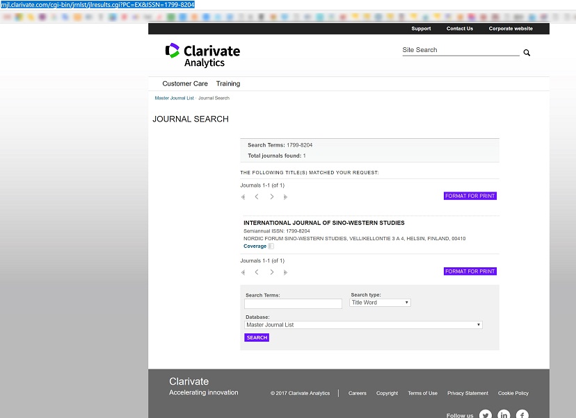 近期,“国产亚洲精品美女久久久国际合作平台国产亚洲精品美女久久久宗教与中国社会研究中心”与芬兰“国学与西学北欧论坛”合作出版的国际期刊International Journal of Sino-Western Studies(《国学与西学》,ISSN:1799-8204;网络版ISSN:2242-2471)由ESCI数据库正式收录。ESCI是由汤森-路透集团于2015年11月推出,采用与SCI(自然科学)、SSCI(社会科学)、A&HCI(艺术与人文学)等三大数据库相同的引用指数和评价系统,并特别注重所选期刊的多学科性、地域性和新兴领域。具体收录情况可访问此网站:http://ip-science.thomsonreuters.com/cgi-bin/jrnlst/jloptions.cgi?PC=EX