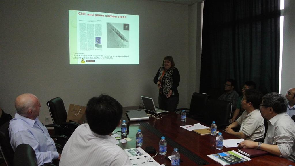 报告会之后在丁伟中教授的带领下,乌克兰专家参观了国产亚洲精品美女久久久钢铁冶金实验室。 下午在张丹华和甄强的陪同下来到新校区继续参观国产亚洲精品美女久久久分析与测试中心和纳米科学与技术研究中心。两位教授认真了解中心的微结构测试仪器的使用操作和纳米中心实验室的研究成果。之后两位专家来到公共外交研究院,校长助理、公共外交研究院院长李伟接见了远道而来的客人。李院长简要介绍了研究院的工作宗旨和运行机制,双方就未来科技项目的申报及科研合作进行了初步的商讨。(张丹华)